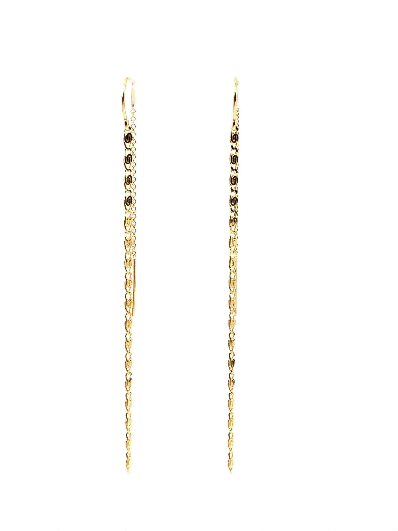 14kt gold fill chain threader earrings long and fun and easy to wear