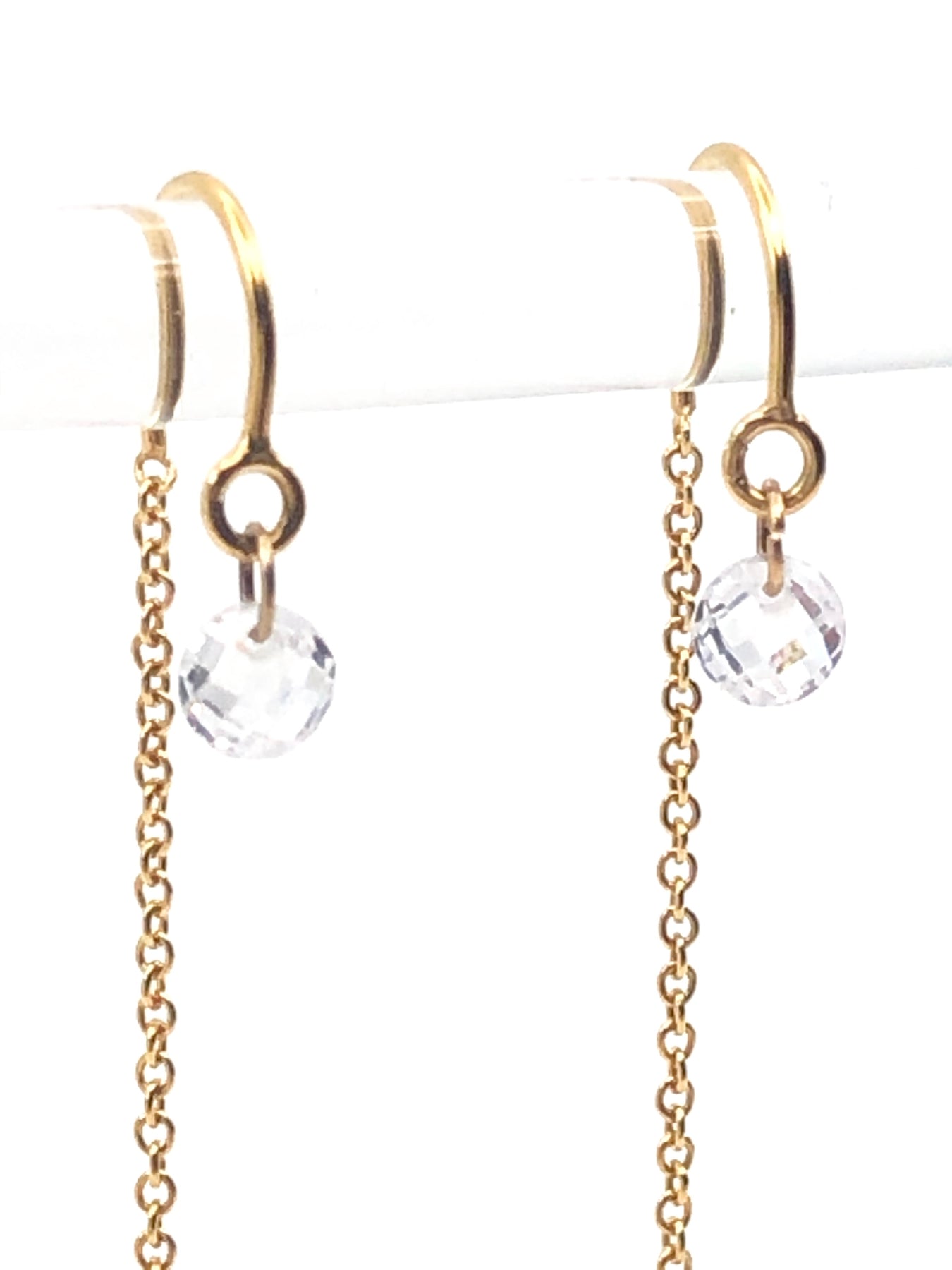 14kt gold fill tiny crystal threader earrings with Swarovski crystal, weightless, comfortable and ready to wear anywhere.