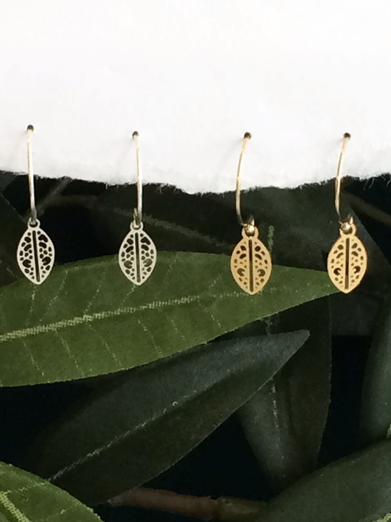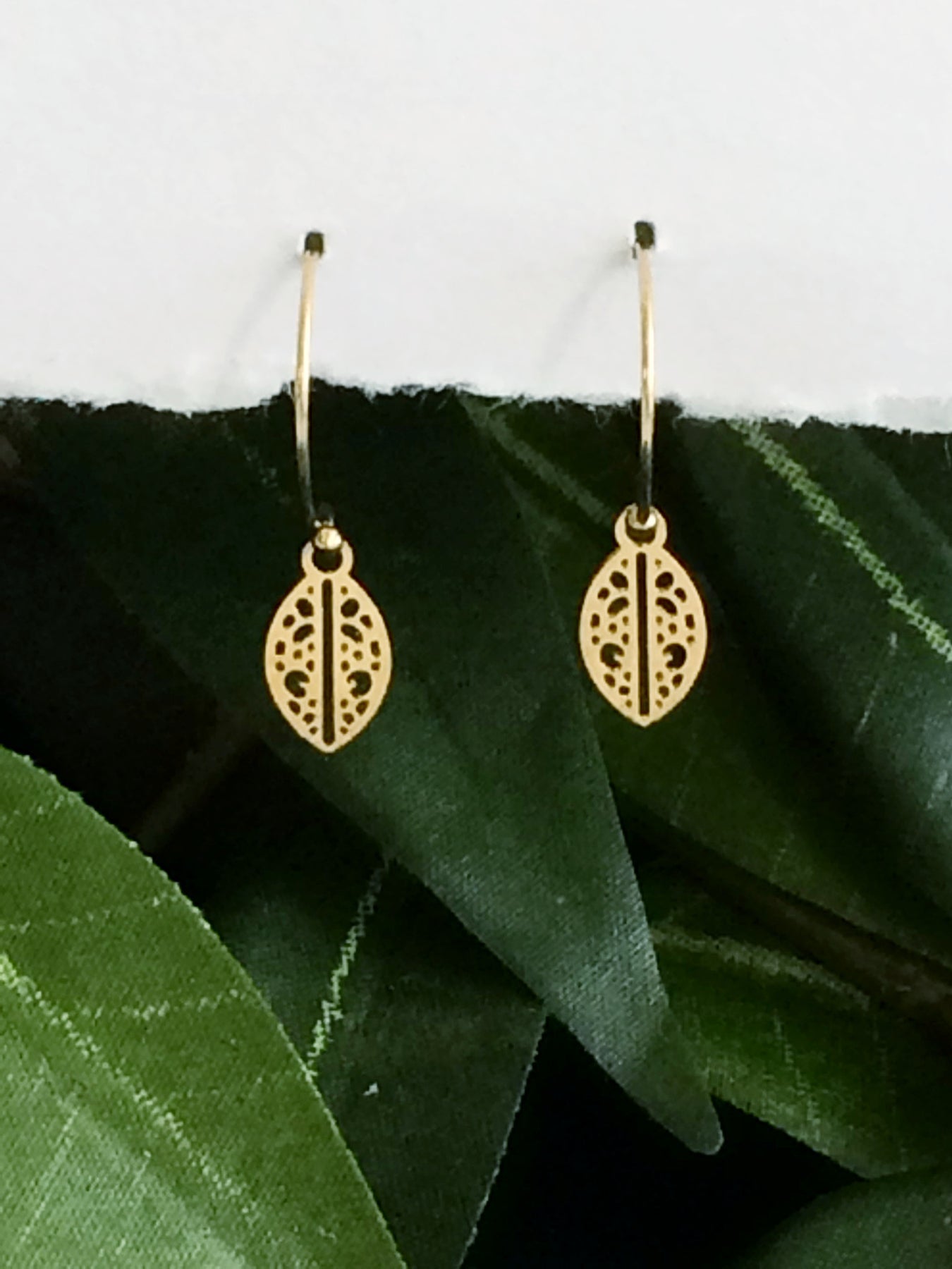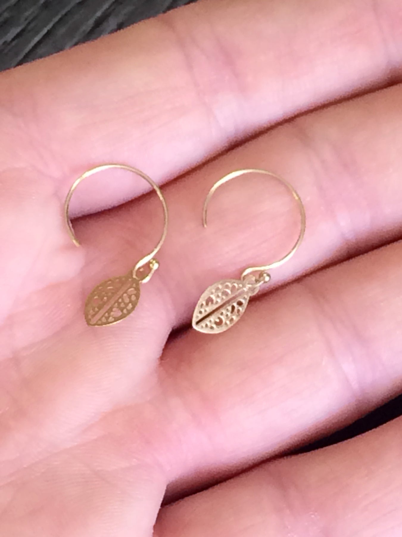simple and weightless tiny leaf earrings in 14kt gold fill