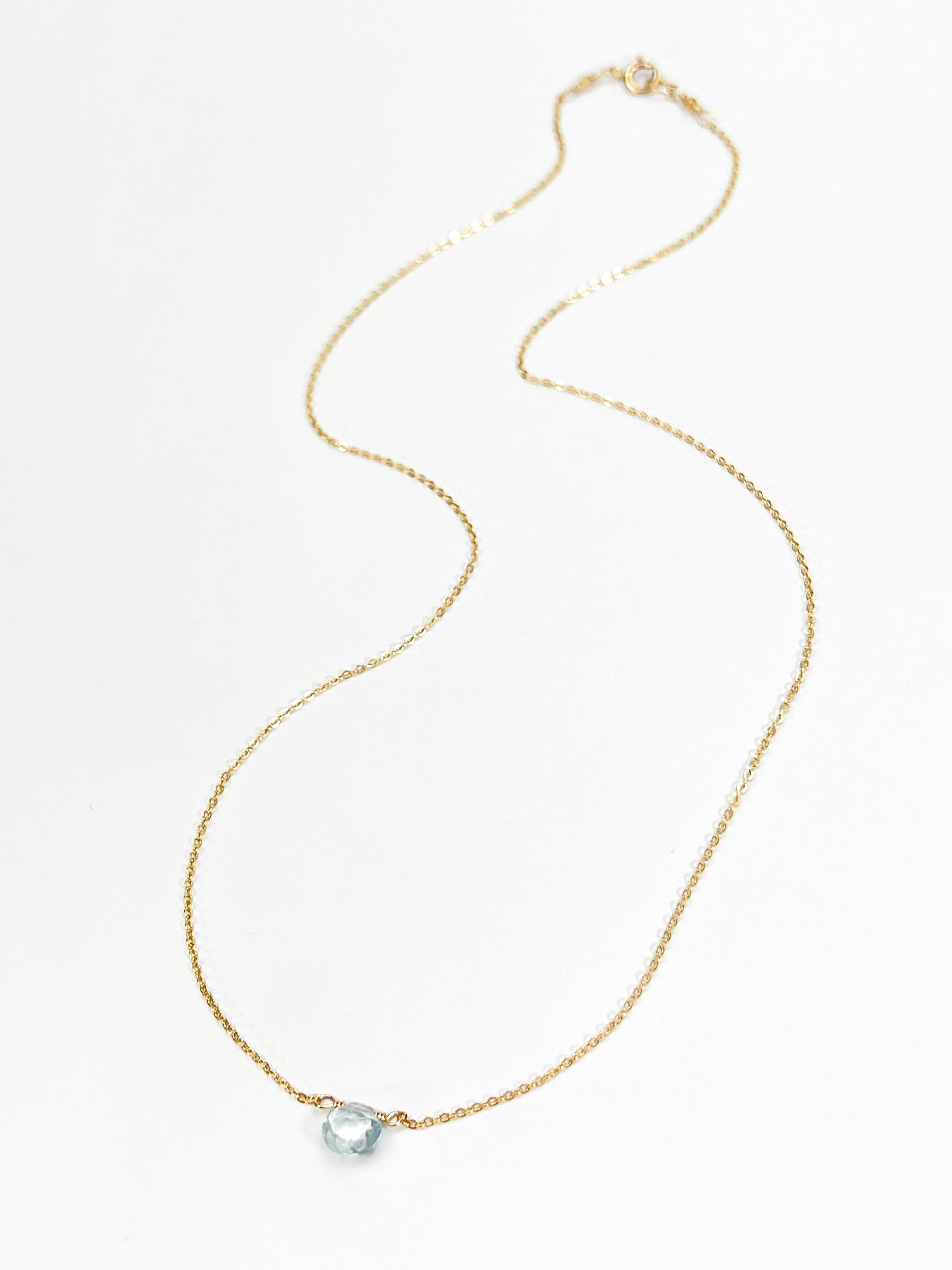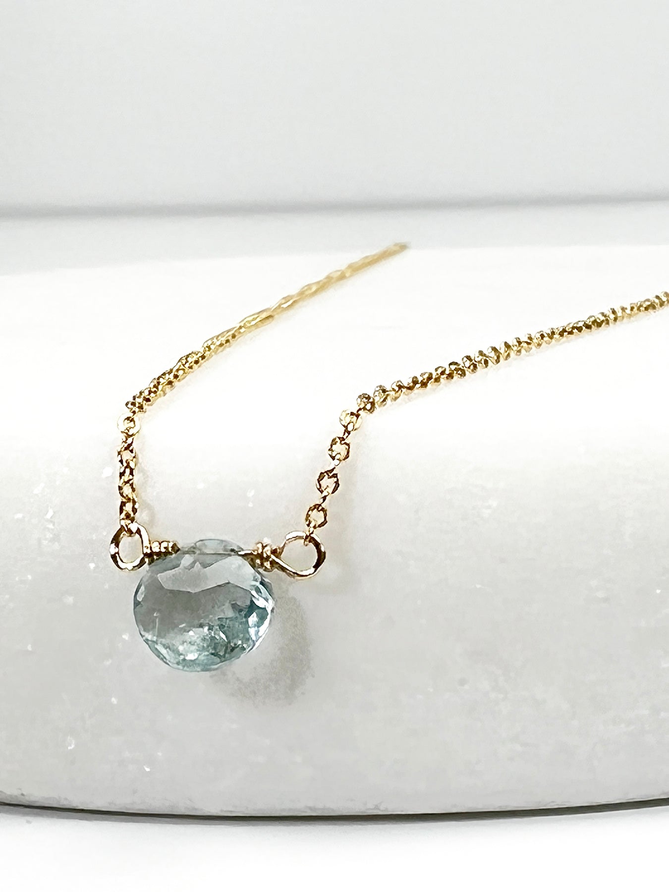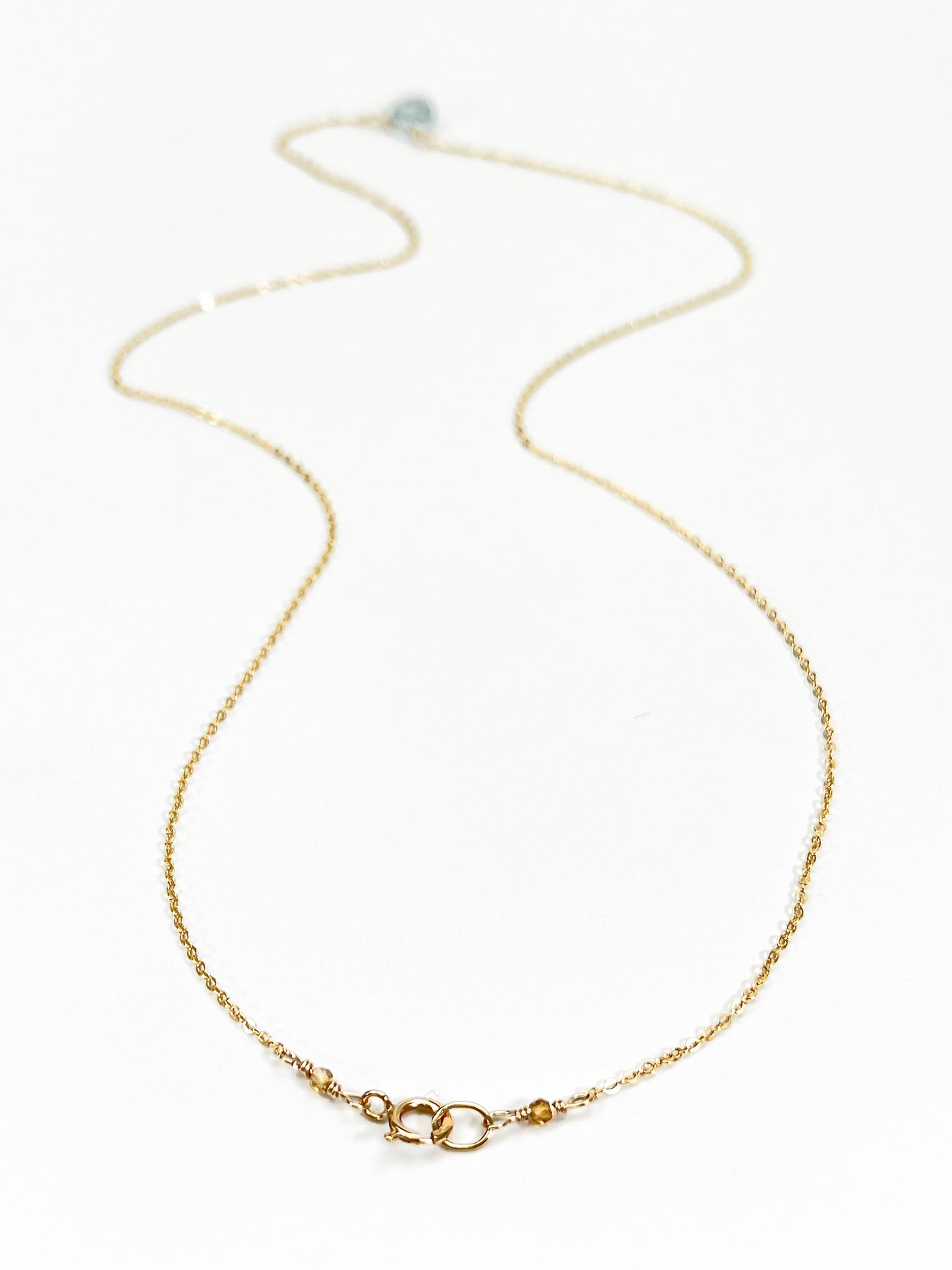 Easy, classic Aquamarine coin necklace perfect for that throw on and go piece. 16" long 14kt gold fill