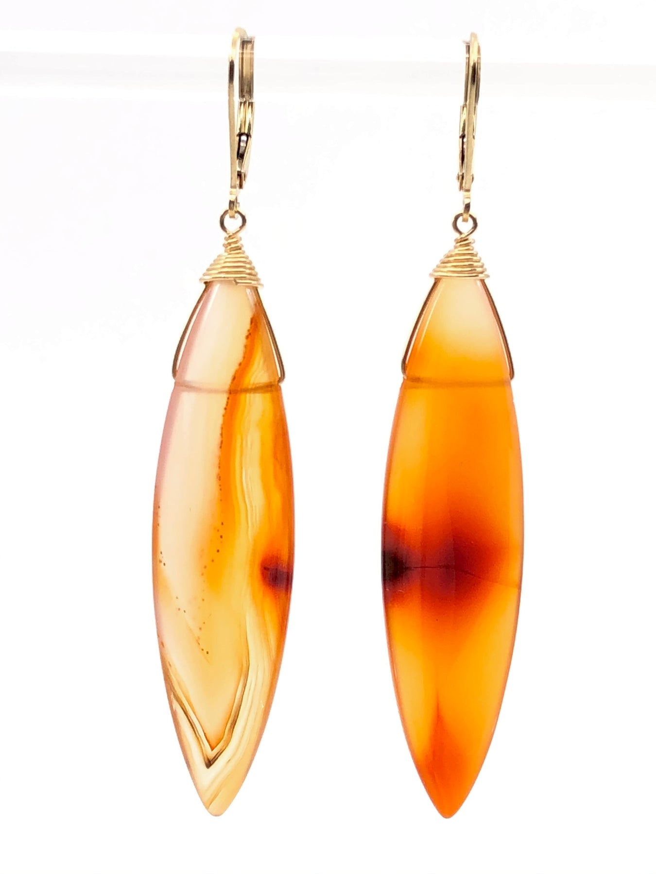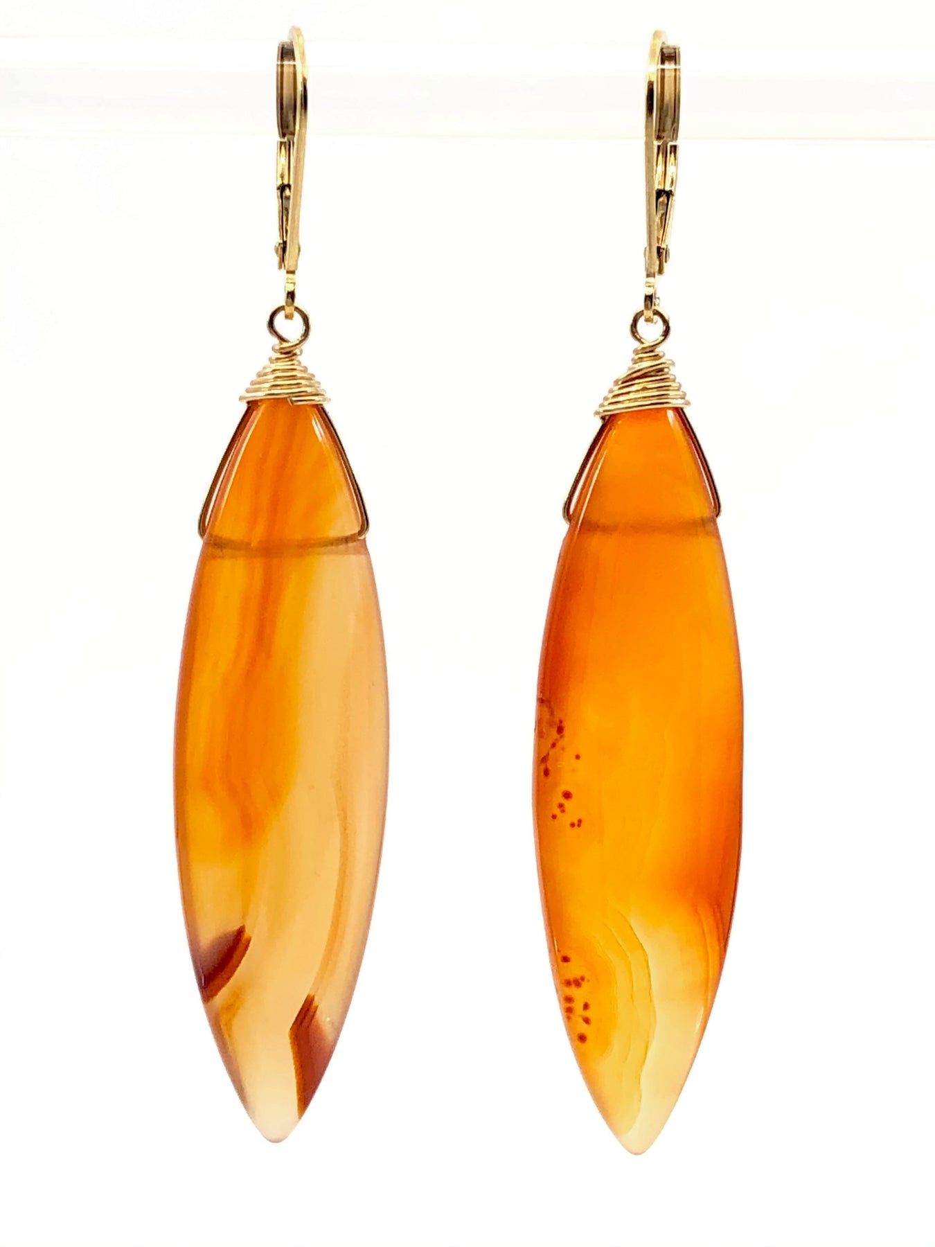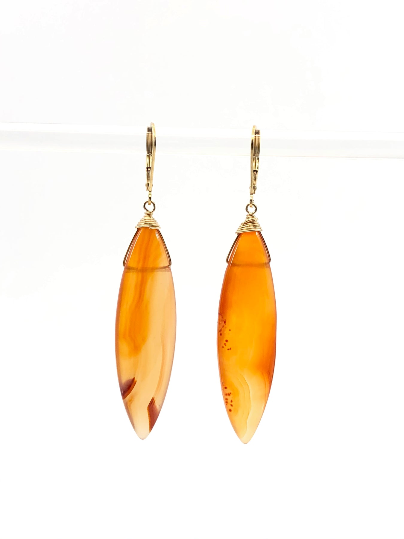 Gorgeous Carnelian marquise earrings in 14kt gold fill. These stones are smoothly polished and stunning with the natural varied color play in each stone.