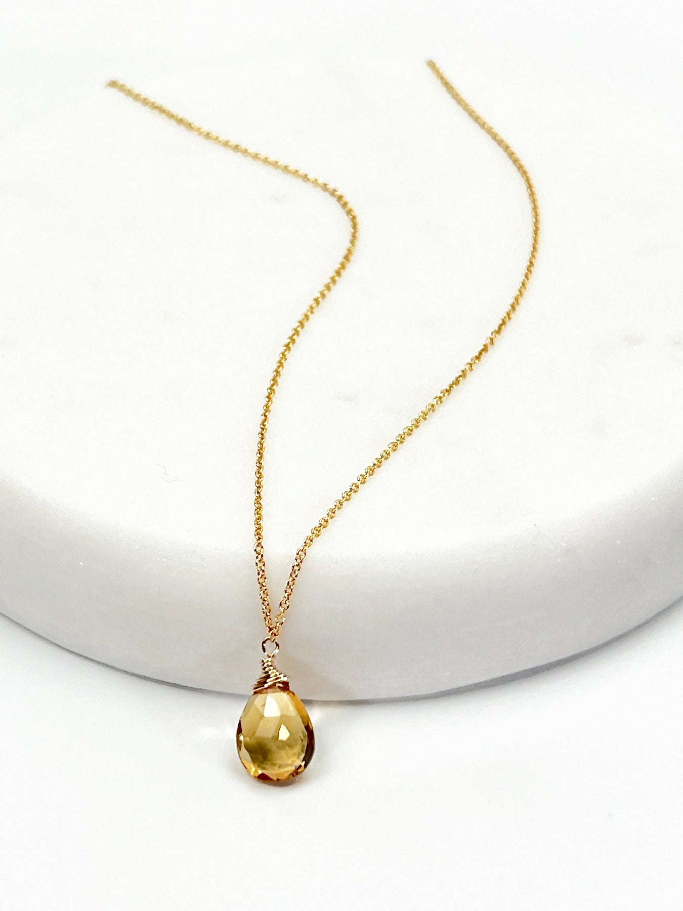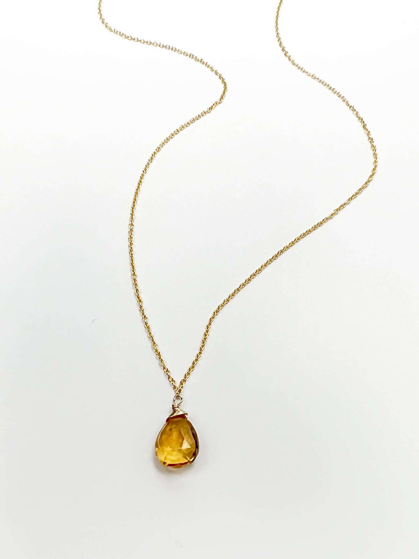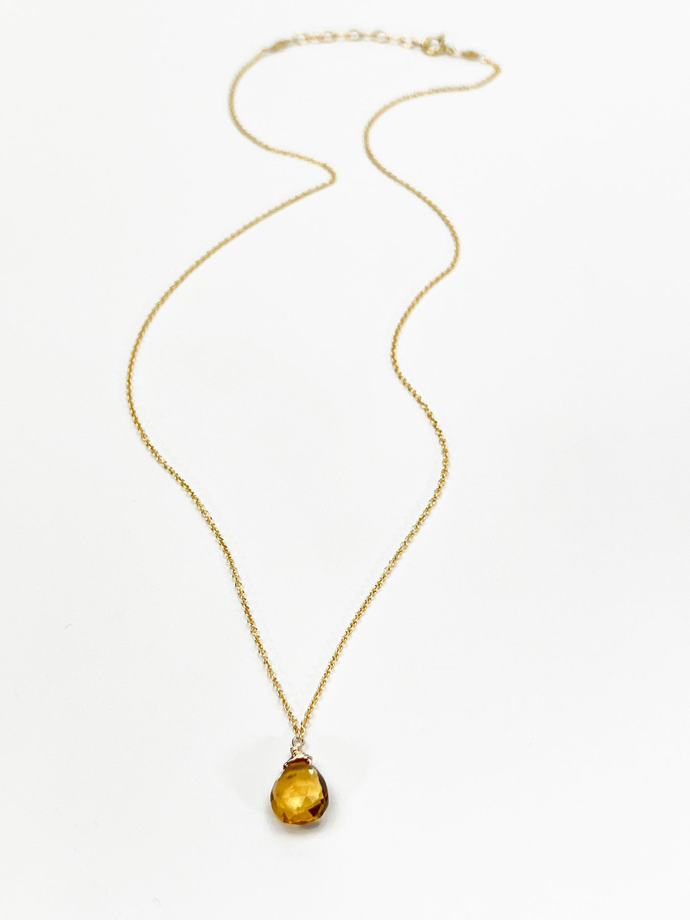 An easy wearing Citrine necklace in 14kt gold fill is 18" long with a 1" extender